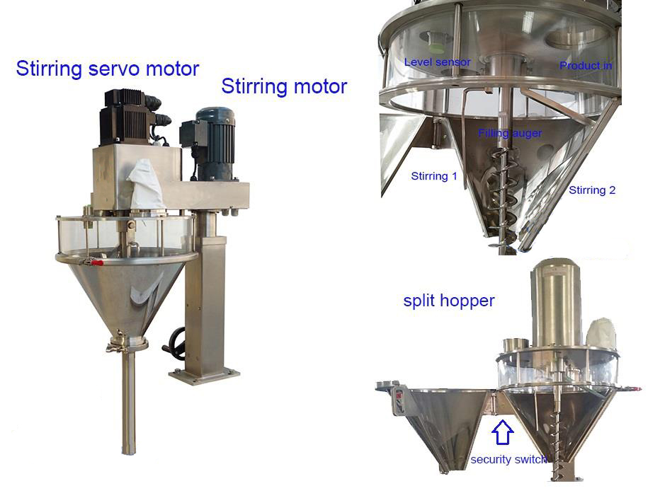 Аугер Филлер са серво моторним погоном, дизајниран за дозирање прашкастих производа, одећа за широк спектар слободних прашкастих производа, као што су брашно, млеко у праху, какао, шећер за шлагове, храна за бебе, зачинске зачине, фино млевена кафа, хемијски производи итд.