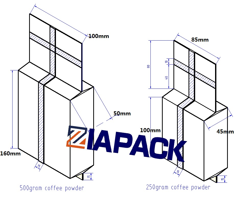 Ова машина укључује један сет ЗЛ520 вертикалне машине за паковање и заптивање кеса. Један сет ЗЛ2000 Машина за мерење сврдла, један сет машина за паковање са двоструком вакуумском комором ЗЛ100В2 и један излазни транспортер. Машина има функцију формирања врећа, пуњења производа, чишћења врећа и усисавање. Може да изабере машину за кодирање термичког трансфера која је популарнија за кодирање датума на вакуумској врећици од цигле за кафу. Ова машина се широко користи за паковање хемикалија у апотекама за храну и других производа у праху или малим гранулама. Попут кафе у праху, квасца у праху, пшеничног брашна и тако даље. Цела машина усваја унутрашњу пумпу за вакумирање производа. Степен вакуума је веома висок, а брзина паковања је веома висока и може да достигне 8 врећа/мин. Готов производ је веома леп и има дуг рок трајања.