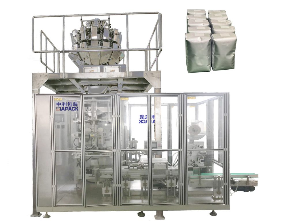 Цела линија укључује један сет вффс кеса за формирање машине за заваривање, једну машину за паковање кеса са налепницама, једну машину за проверу тежине и транспортну машину и једну машину за умотавање скупљајућег филма. Цела машина може аутоматски да заврши мерење зрна, налепницу за заптивање врећа и савијање. Постоји додатна опциона функција за усисавање врећице која се може додати на ову машину.
