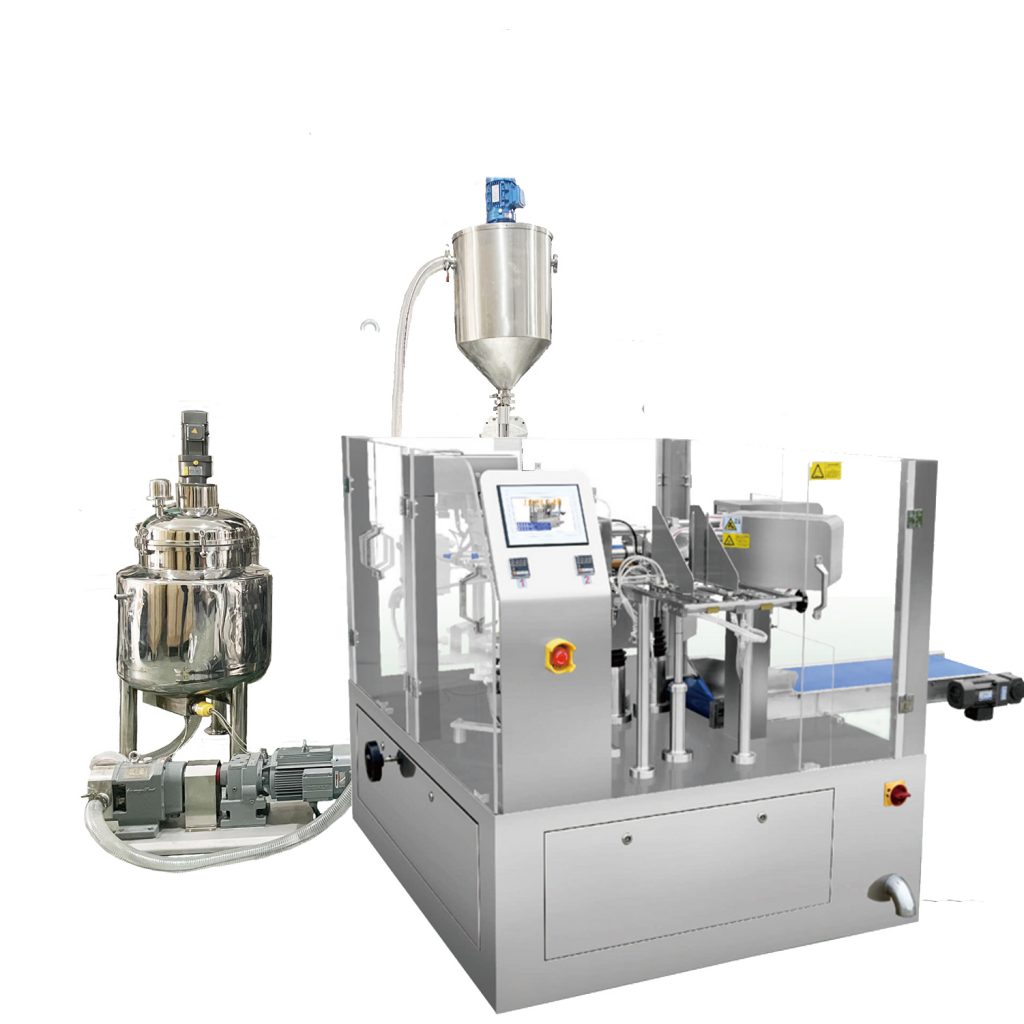 Опремљен клипним пуњењем као систем дозирања, широко је примењен на паковање течности и пасте, као што су детерџент, омекшивач, шампон, гел за туширање, млеко, воду, сок, сос од соје, уље, кечап, мајонез и тако даље.