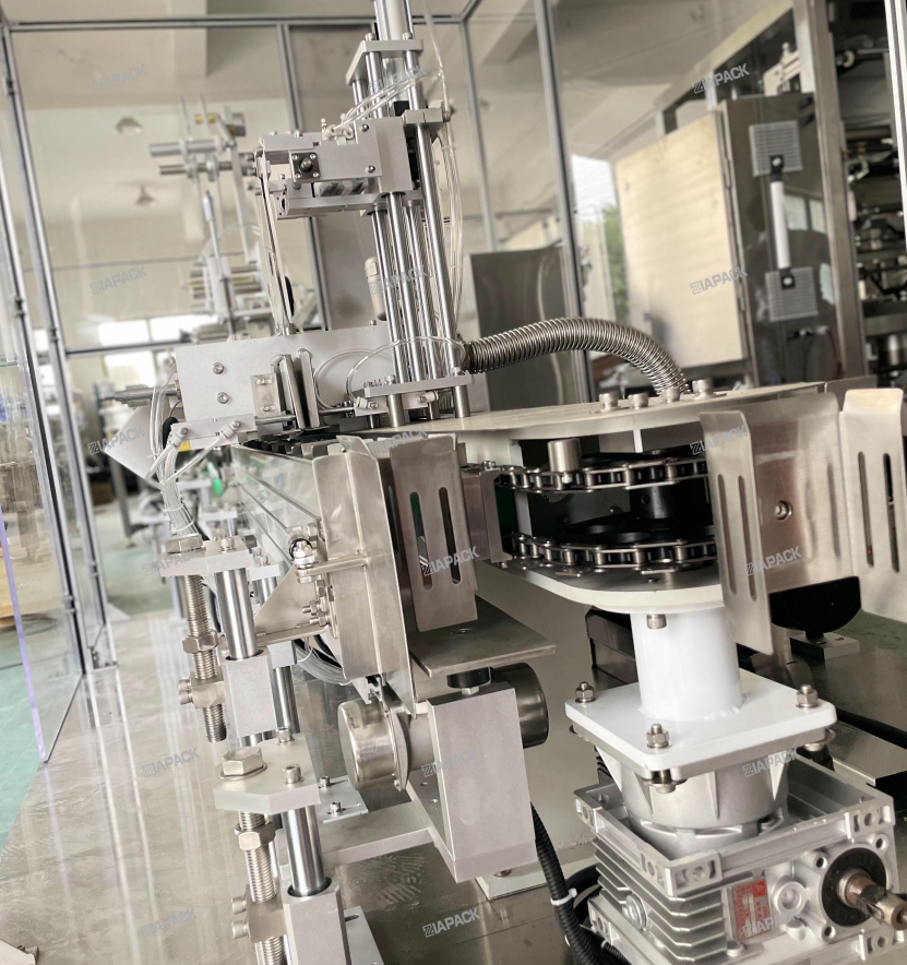 Ова машина је специјалног дизајна за паковање производа од гранула у врећу са квадратним дном. Широко се користи за паковање зрна пшеничног пиринча и сличних производа. Ова машинска јединица укључује ЗЛБ500 волуметријски систем за дозирање чаша ,један сет ЗЛ420 вертикална машина за пуњење кеса .један сет ЗЛИБ1000 линеарна машина за формирање кеса за заптивање и етикетирање и један сет излазног транспортера .Може да направи лепу кесу са квадратним дном и преклопи уста и етикетирање кеса. Тако да готова кеса има лепу облик, леп изглед.