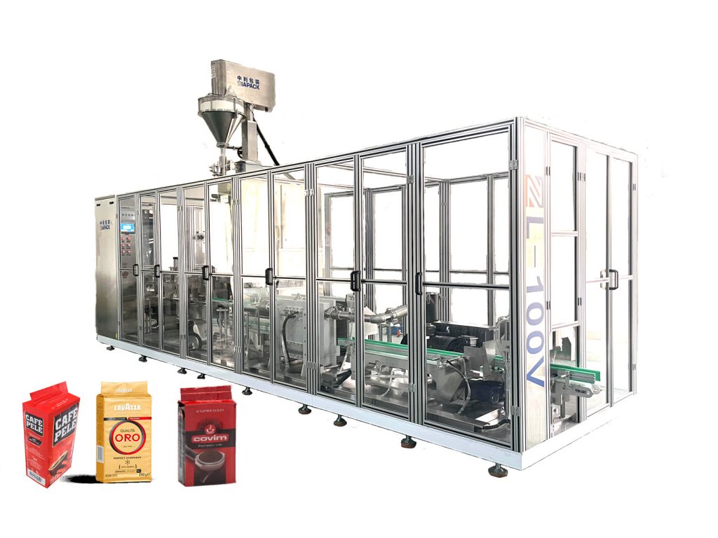 Ова машина укључује један сет ЗЛ520 вертикалне кесе за паковање и заптивање. Један сет ЗЛ2000 машина за мерење са дуплом кантом, један сет машина за вакум паковање ЗЛ-100В и један сет излазног транспортера. Ова машина се широко користи за паковање хемикалија за храну и других производа у праху или малим гранулама. Попут кафе у праху, квасца у праху и тако даље. Цела машина усваја унутрашњу пумпу за вакумирање производа. Степен вакуума је веома висок и брзина паковања је веома висока и може да достигне 15 врећа/мин. Готов производ је веома леп и има дугу полицу живот.