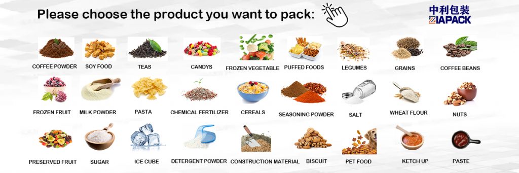 Погодан је за грануле, комад, пахуљице производе, као што су грицкалице, сир, пасте, бомбоне, храна за кућне љубимце, ИКФ смрзнуте намирнице ...