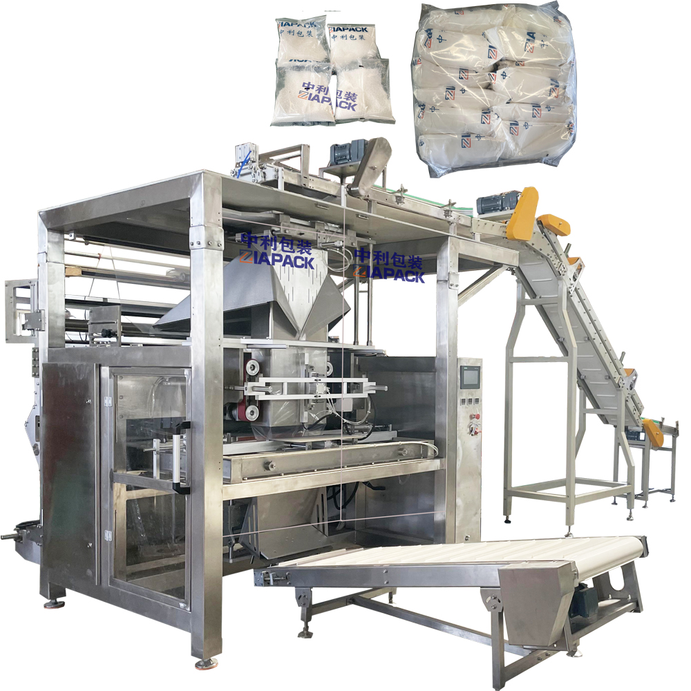 Ова машина је погодна за паковање мале кесе у велику кесу. Машина може аутоматски направити кесу и напунити малу кесу, а затим затворити велику кесу. Ова машина укључујући јединице мехања: